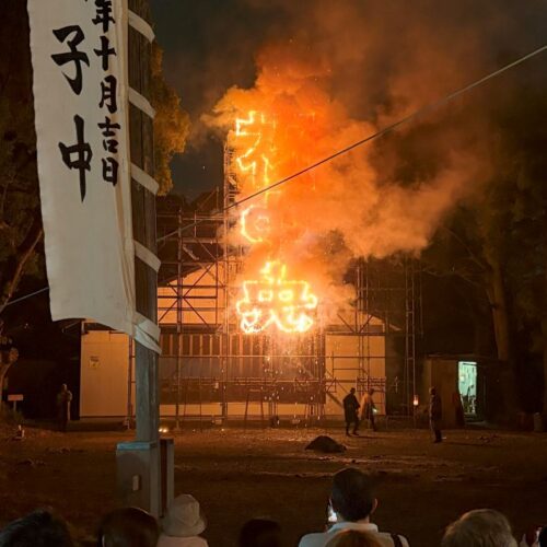 10月11日(土)に、豊橋中央高等学校からJRの線路をまたいで向こう側に位置する小池神社にて祭礼が行われ、豊橋中央高等学校硬式野球部の甲子園初出場を祝した仕掛け花火が奉納されました。 点火時には「炎のファイター」の音楽が流れました。マイハー...