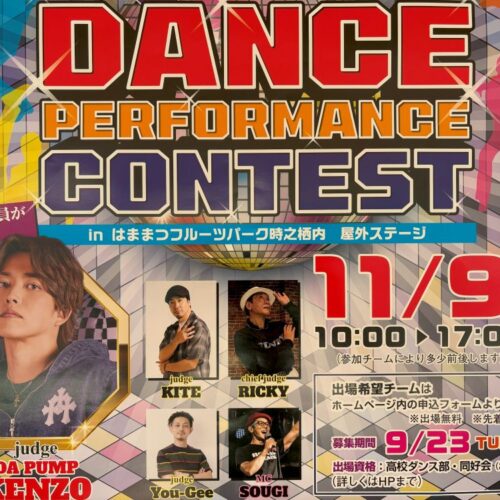 本校ダンス部が、11月9日(日)に、はままつフルーツパークで開催される「第11回 浜松いわたしんきんダンスパフォーマンスコンテスト in はままつフルーツパーク」に出演します。 DA PUMPのKENZOさんなど著名なダンサーが審査員を務め...