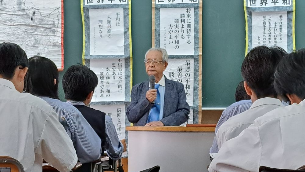 10月3日(金)、2年生キャリアデザインコース学校設定科目「未来探究」の平和継承フィールドでは、東三河満蒙開拓団の一員だった橋本克己さんをお招きし、当時のお話を聞きました。