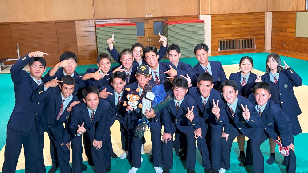 10月23日(木)にプロ野球ドラフト会議があり、プロ志望届を出していた本校硬式野球部の松井蓮太朗選手が読売ジャイアンツから育成3位で指名されました。松井選手はこの夏、捕手として甲子園初出場の原動力となりました。