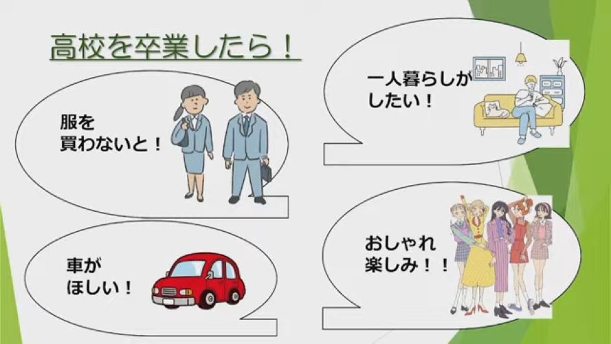クレジットカードを使い過ぎて多重債務に陥った大学生の動画を視聴し、計画的にお金を使うことの重要性を喚起する内容でした。