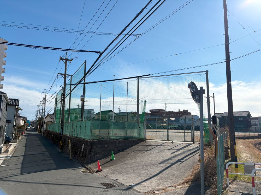 この冬季休業中に鍵田グラウンドのアップグレードを行い、道路側にネットを設置しました。高さは10mあります。