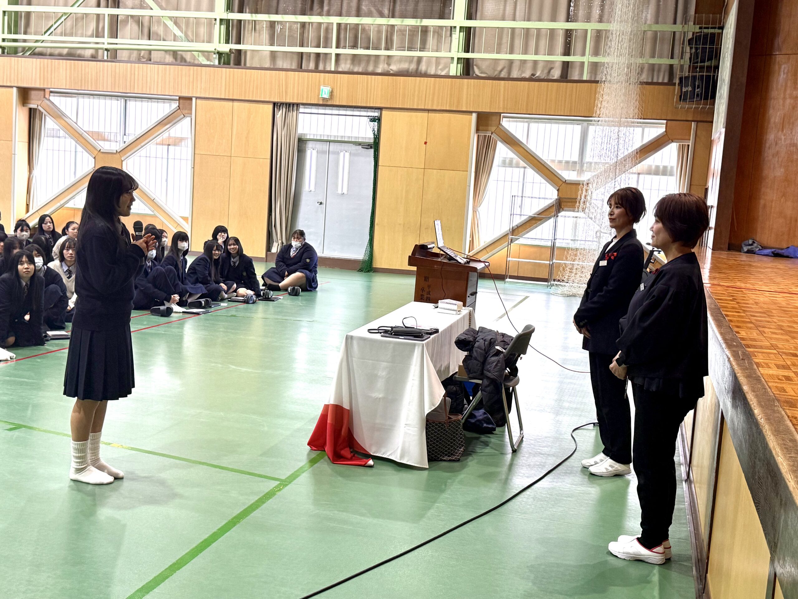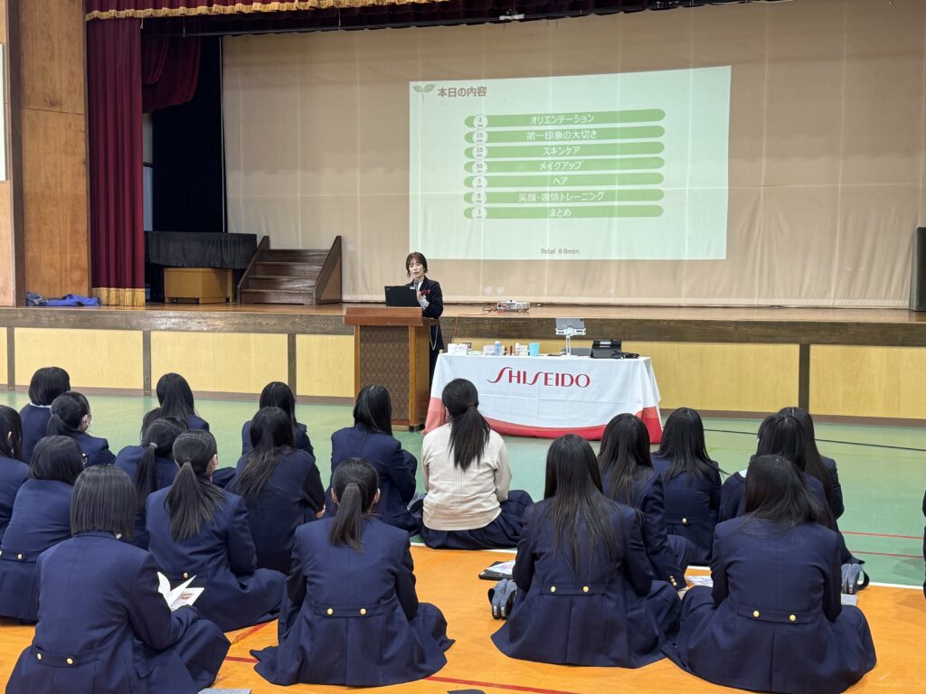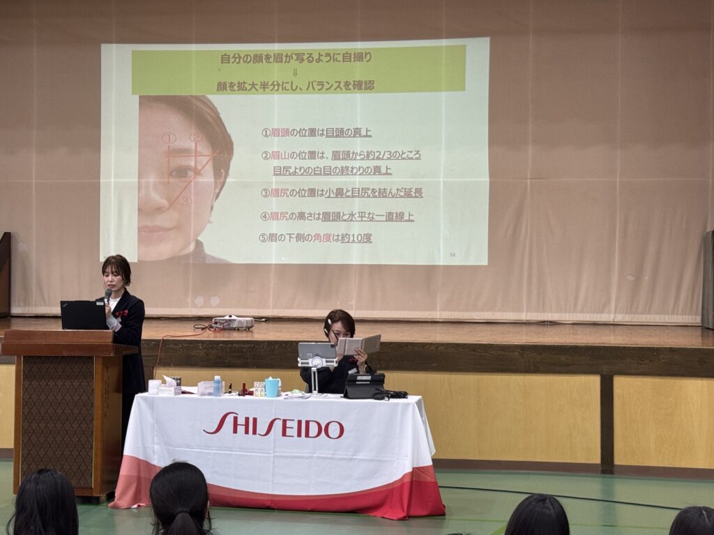 ビジネスメイクだけでなく普段のメイクの参考にもなる内容も含まれており、共感しながらうなずいている生徒が多くいました。