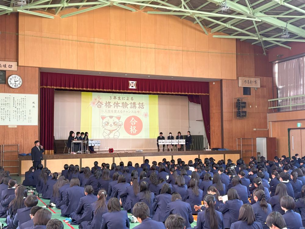 2月2日(月)には進路指導部主催で合格体験講話がありました。大学合格・就職内定を勝ち取った3年生の先輩たちが1・2年生と体験談を共有する行事で、毎年恒例となっています。