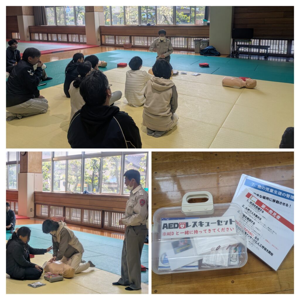 教職員によるAED講習会 未分類 2026.03.24 本日(3/24)豊橋中消防署の西山さんを招き心肺蘇生法、AEDを使用した、一次救命処置を学びました。 本校(幼稚園も含む)には5つのAEDを設置しています。今後は、学校現場で起こりそうな事例を想定し、現場にいた教職員が取るべき迅速で適切な行動をサポートする「救命アクションカード」を活用し、連携の確認もしていきたいです。 本日は、緊急時に動ける知識を学ぶことができました。
